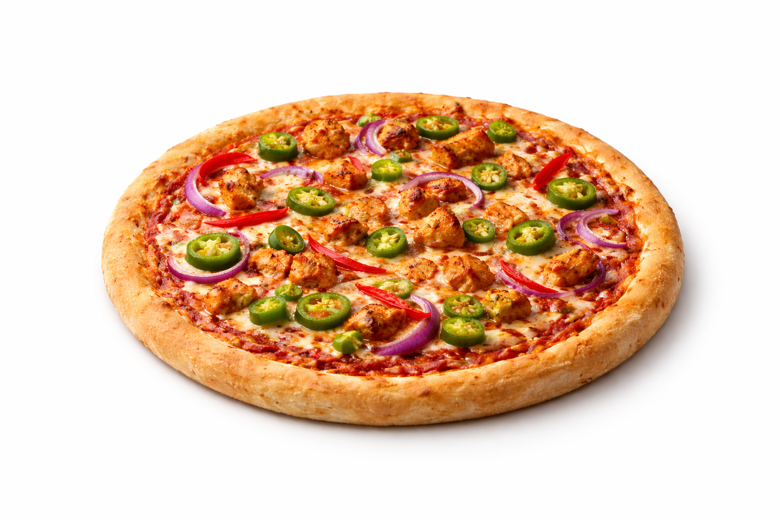 Our stone-baked pizza is crafted with care and high-quality ingredients. The medium 9″ base is complemented by a vibrant tomato sauce, melted cheese, and fluffy american hot toppings.
